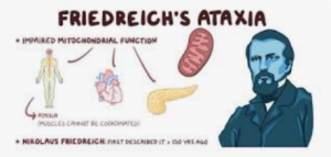 Атаксия Фридрейха (АФ) — это наследственное нейродегенеративное заболевание, при котором происходит повреждение нервной системы, в частности спинного мозга и периферических нервов. Причиной болезни является мутация в гене FXN, приводящая к дефициту белка фратаксина, необходимого для нормального функционирования митохондрий и транспорта железа. Это приводит к накоплению железа и образованию вредных свободных радикалов, вызывающих повреждение клеток.