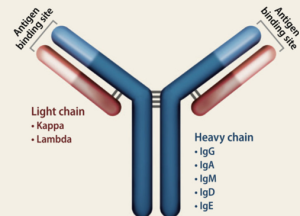 Иммуноглобулины (или антитела) — это белки, которые иммунная система вырабатывает для борьбы с чужеродными веществами, такими как вирусы, бактерии и токсины. Они связываются с этими «антигенами» и помечают их для уничтожения, играя ключевую роль в защите организма от инфекций. Как и большинство секретируемых белков, тяжёлые и лёгкие цепи иммуноглобулинов синтезируются рибосомами, находящимися на шероховатом эндоплазматическом ретикулуме (ЭПР). Существует пять основных классов иммуноглобулинов (IgA, IgG, IgM, IgD, IgE), каждый из которых выполняет свои специфические функции. IgG: Самый многочисленный класс, обеспечивающий долговременную защиту и иммунную память. Антитела класса IgG обеспечивают долговременную защиту, «запоминая» патогены и позволяя организму быстро реагировать на повторное заражение.