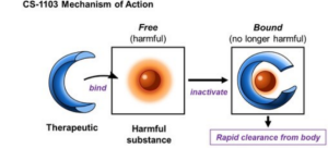 CS-1103 — инъекционный препарат, который в доклинических исследованиях связывал и инкапсулировал интоксиканты в крови, быстро устраняя их токсическое действие. Впоследствии CS-1103 ускоряет выведение интоксикантов в мочу, предотвращая дальнейший вред. В ходе клинических исследований фазы 1 было показано, что CS-1103 безопасен и хорошо переносится людьми в клинически значимых дозах. Ожидается, что испытания фазы 2 начнутся в первом квартале 2026 года.