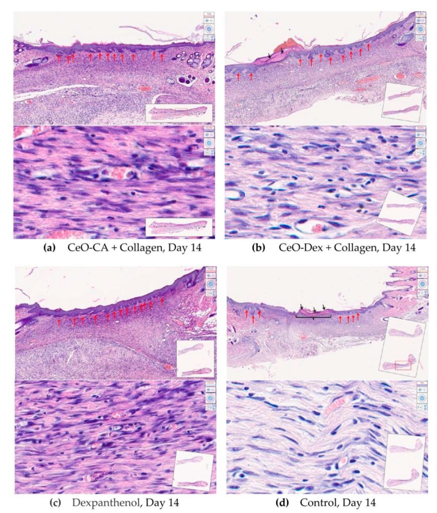 Затем участники исследовательского коллектива совместно с коллегами из Курского государственного медицинского университета протестировали разработку на лабораторных животных со смоделированными глубокими кожными ранами. Авторы сравнили три группы крыс: первой на раны нанесли коллаген-наноцериевый гидрогель, второй — применяемый в клинической практике препарат декспантенол (мазь, ускоряющая обновление клеток), а у животных из третьей группы раны заживали самостоятельно.